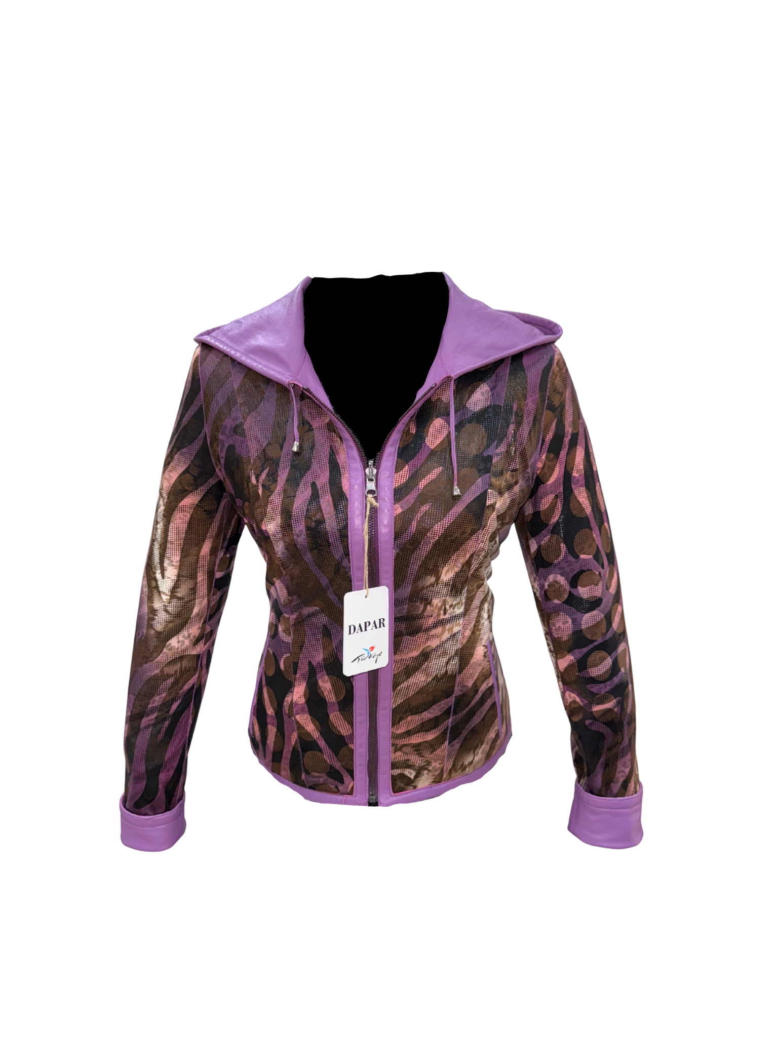 Chaqueta de Cuero Con Gorro Reversible Color Lila