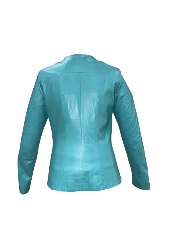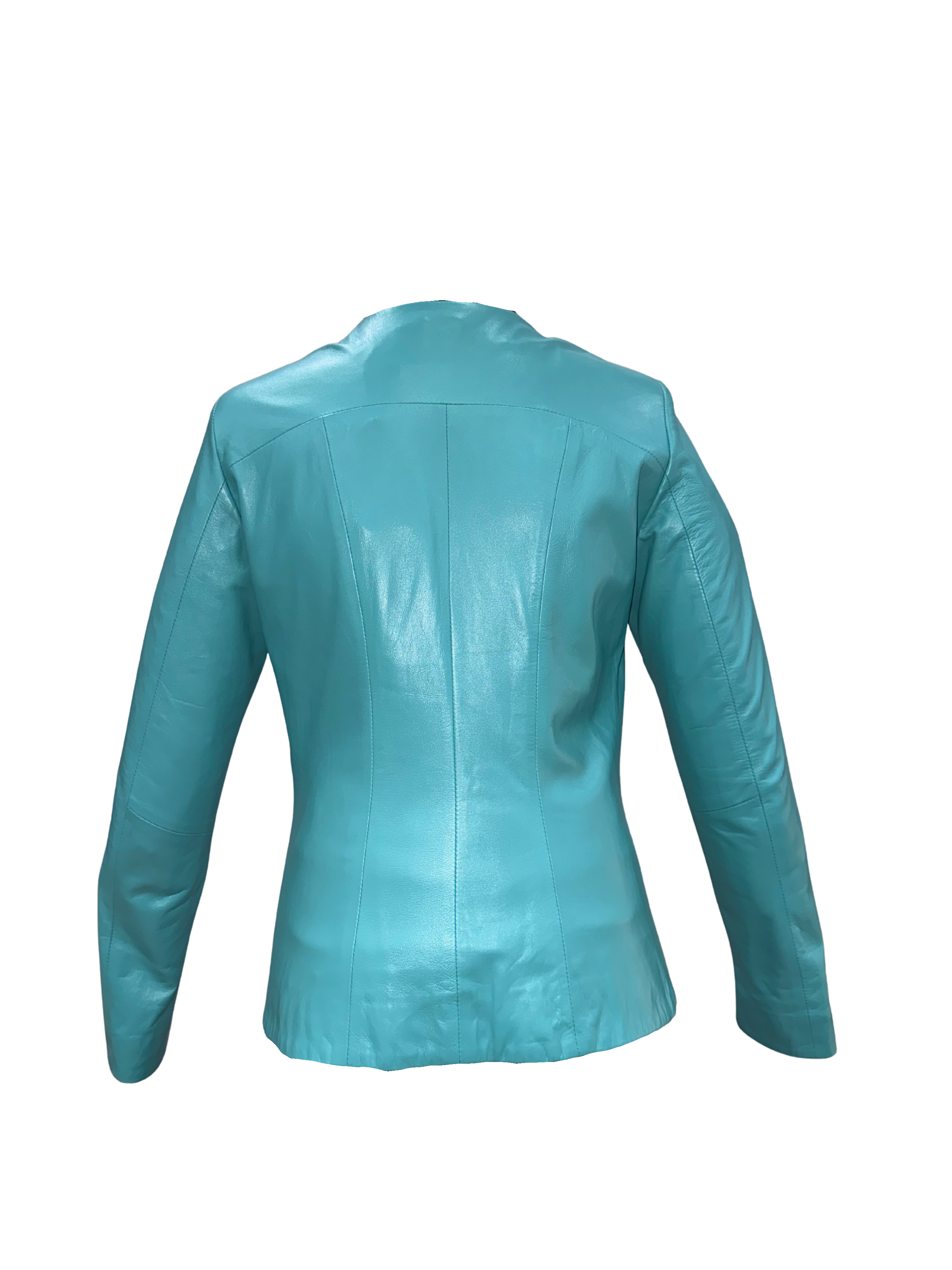 En conclusión, esta chaqueta de cuero turquesa es una inversión atemporal que combina elegancia, comodidad y diseño exclusivo, ideal para mujeres que desean destacar con seguridad y estilo.